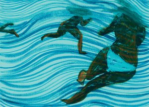 Sola Olulode'Heads Above Water', 2026. Ink and pastel on coloured paper: 21 x 29.7 cm.