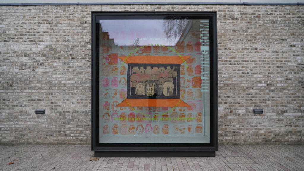 Event Our Bermondsey Blue Chutney One Jar, One Story, One Neighbourhood 4 December 2025 – 5 February 2026 Back Kneed Festive Window Display Location Window Display Images Detail of Kneed Window Display Detail of Kneed Window Display Detail of Kneed Window Display Detail of Kneed Window Display This window display was created in collaboration with local community groups together with Kneed artists Ishwari Bhalerao and Leonie Rousham, and as part of their community residency project Drawing Things Together. Throughout Autumn and Winter, Kneed have been working with Drawing Room, Big Local Works, The Blue Market, Lynton Road Allotments, the local orchard and community groups in Bermondsey, to make and share a condiment together. The risograph prints that adorn the window, made during collaborative workshops, are just one part of the output of this expansive project! The window display opened as a part of the Bermondsey Festive Windows Trail, a fantastic community initiative organised by Big Local Works. Find their map online and discover Bermondsey’s creativity and history as the Larder of London illuminated through art. Downloads Related Content Eclectic Projects Drawing Things Together A Community Residency with artist duo KNEED Autumn and Winter 2025 Drawing Things Together Welcome to the Chutney Factory Mix. Make. Imagine. 15 November 2025, 1pm-4pm See more related content