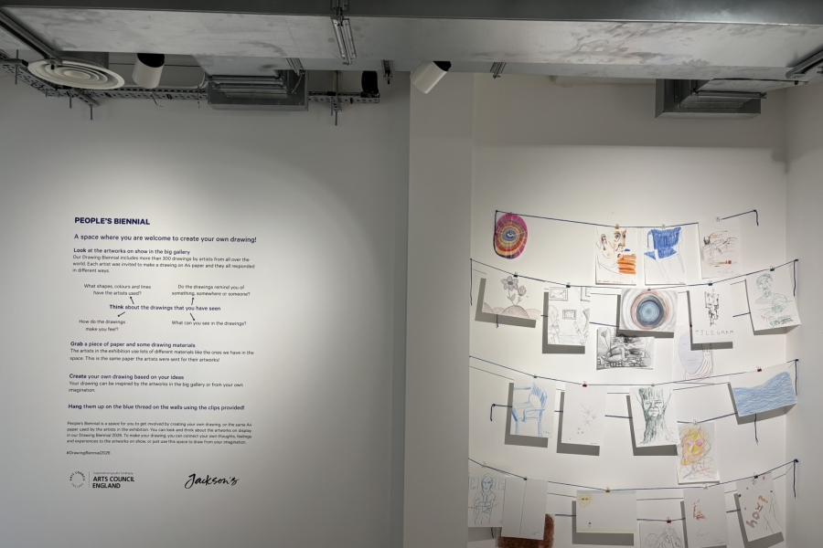 Display People’s Biennial 16 April 2026 – 23 June 2026 Back Peoples-Biennial-2026 (1) Location Gallery Installation views People's Biennial 2026 People's Biennial 2026 People's Biennial 2026 A space where you are welcome to create your own drawing! People’s Biennial is a space for you to get involved by creating your own drawing, on the same A4 paper used by the artists in the exhibition. You can look and think about the artworks on display in our Drawing Biennial 2026. To make your drawing, you can connect your own thoughts, feelings and experiences to the artworks on show, or just use this space to draw from your imagination.In an installation inspired by the artworks in Drawing Biennial 2026, our gallery walls are filling up with drawings using different materials, exploring different themes and responding to the exhibition in different ways. Our People’s Biennial is open Wednesday – Sunday, 12–6pm for the duration of our Biennial – you’re welcome to come in, grab a piece of paper and some drawing materials and create your own Biennial artwork! Supported by Our People’s Biennial is supported by Jackson’s Art Supplies who have generously supplied pencils, pastels and paper for the project. Downloads Related Content Exhibition Drawing Biennial 2026 16 April 2026 – 23 June 2026 Join & Support Biennial 2026 catalogue See more related content
