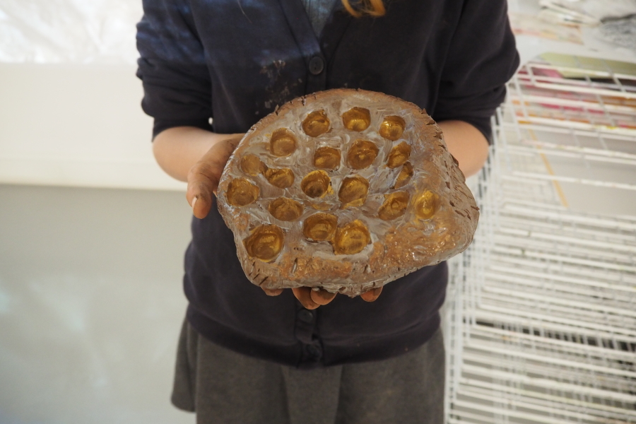 Inspired by The Shore, the after-school club children created richly textured, bronze-toned hand-held sculptures. These works celebrate both natural and re-imagined landscapes, and the process of sculpting organic forms.